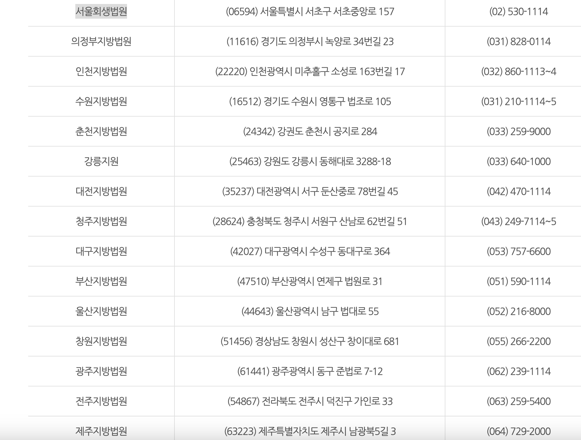 개인회생 신청은 각 지방의 법원에서 신청을 할 수 있기 때문에 각 해당 지역의 법원에 전화를 하여 안내를 받으시는 것도 좋습니다.