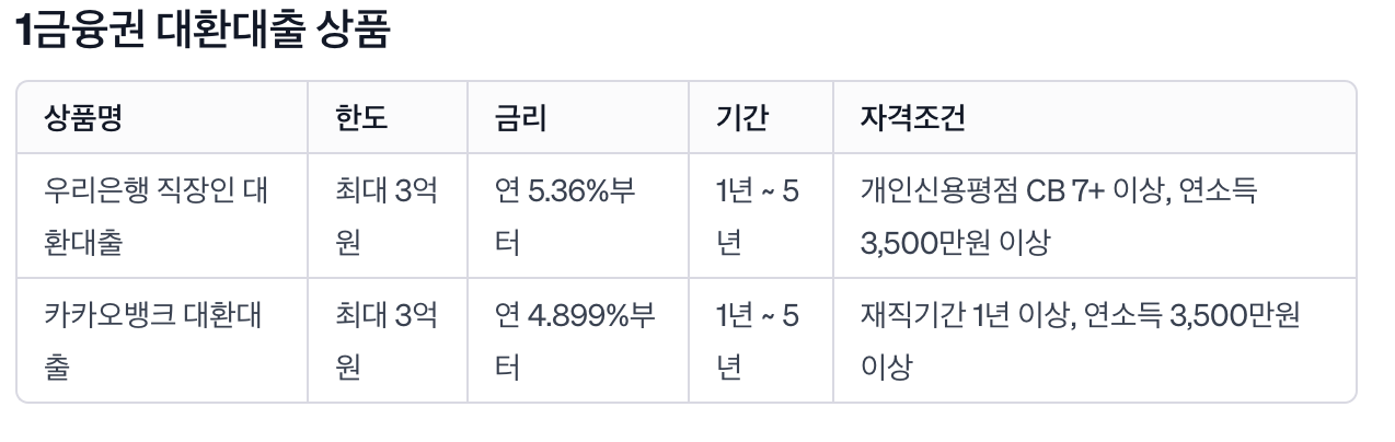 - 자격조건: 재직기간 1년 이상, 연소득 3,500만원 이상