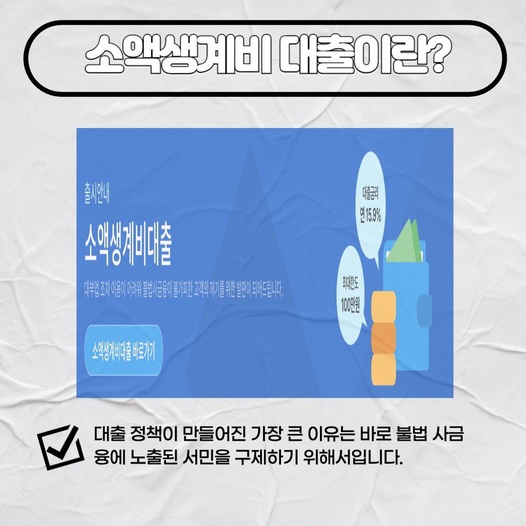 소액생계비대출 정책이 만들어진 가장 큰 이유는 바로 불법 사금융에서 피해를 입은 서민을 구제하기 위함입니다.