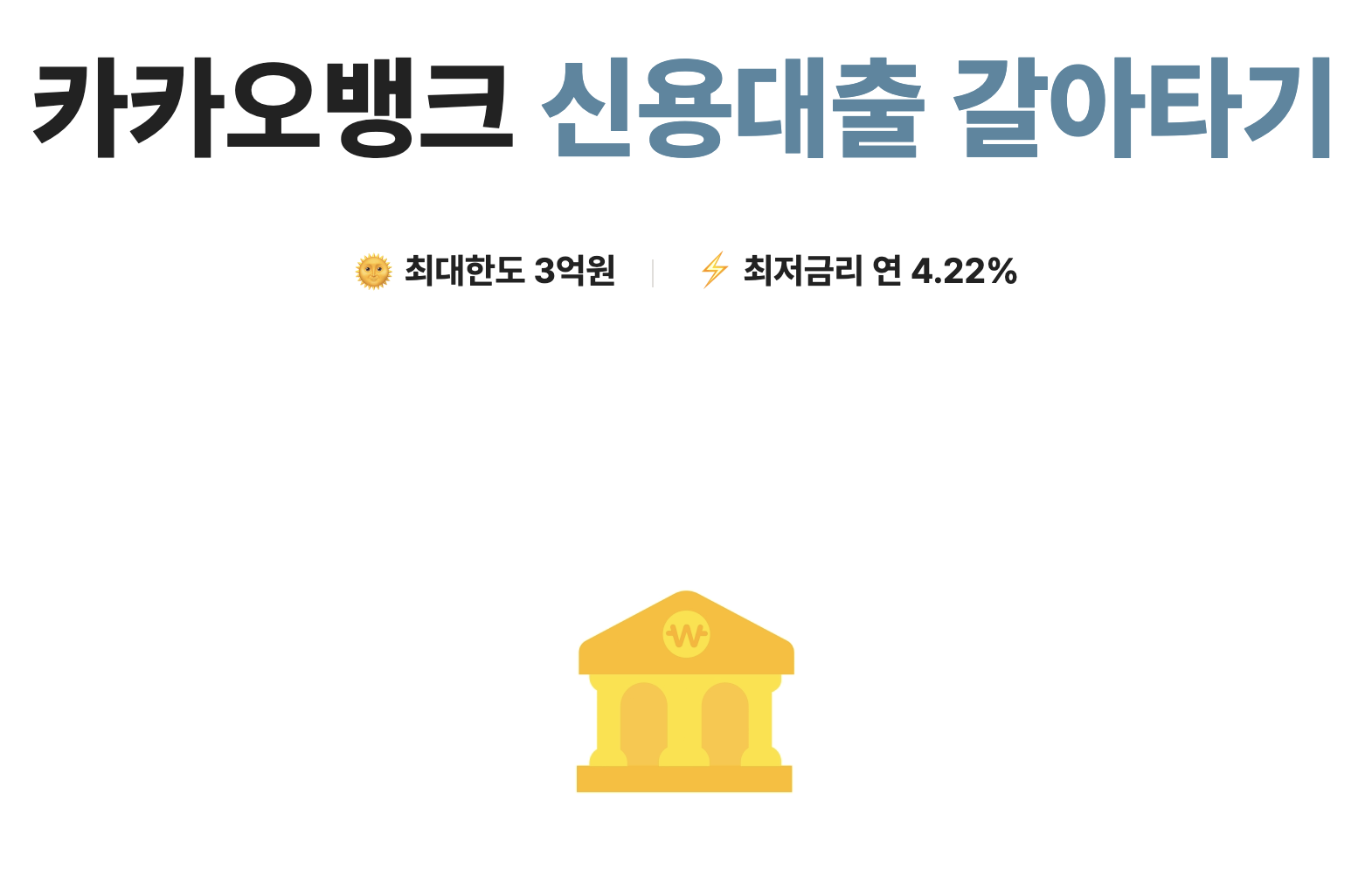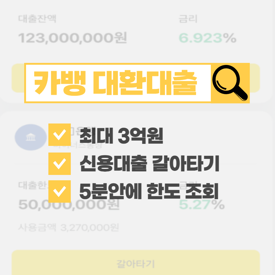 기존 다른 금융기관에서 이용 중인 대출을 카카오뱅크의 대출 상품으로 갈아타는 서비스입니다.