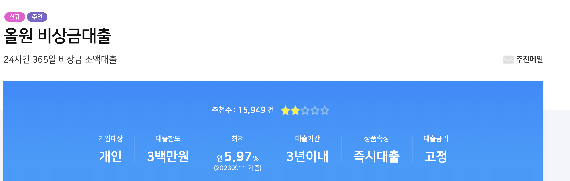 소액에비해 자금이 조금 더 필요하셨던 분들께 추천하는 상품입니다.