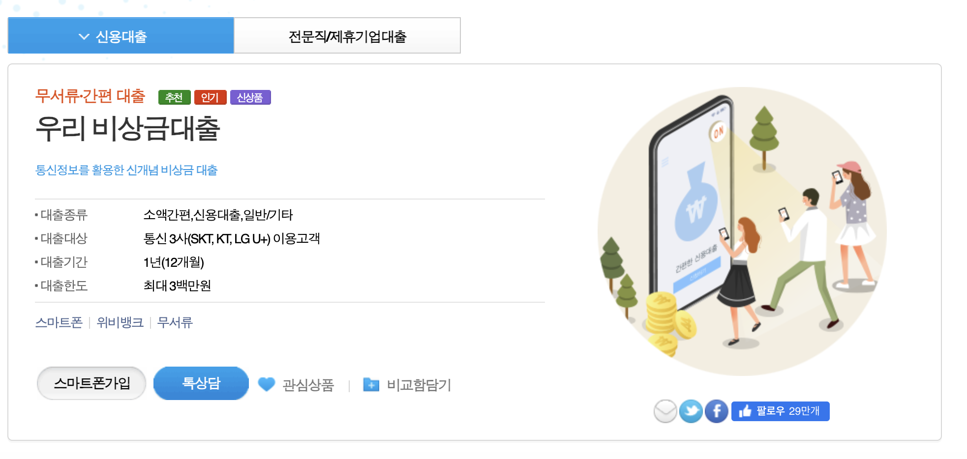 통신사 휴대폰 소액대출 우리은행 비상금대출