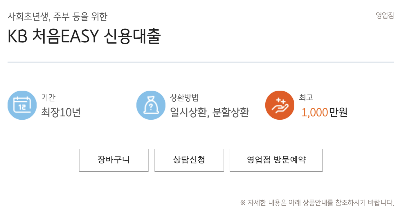 KB 처음 EASY 신용대출 한눈에 요약정리