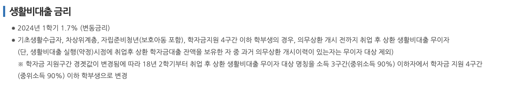 한국장학재단 생활비 대출은 변동 금리 1.7%를 제공합니다.
