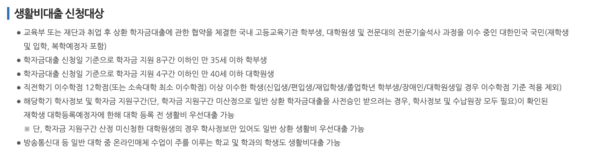 직진학기 이수학점이 12학점 이상인 학생, 해당 학기 학사정보 및 학자금 지원구간이 확인된 재학생이나 대학등록예정자,