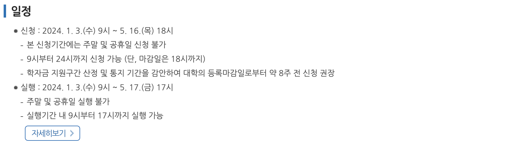 2024년도 학국장학재단 생활비 대출 일정