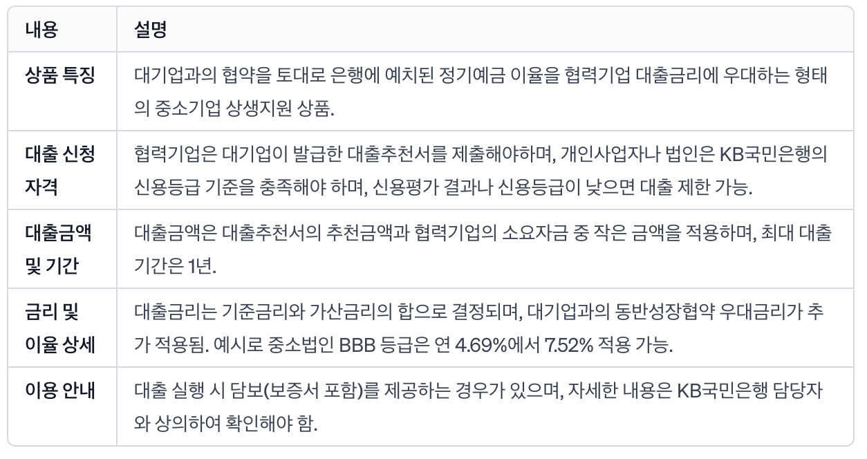 안녕하세요. 오늘은 대기업과 KB국민은행 간의 「동반성장 펀드 협약」을 기반으로 한 혁신적인 중소기업 상생지원 상품에 대해 알아보겠습니다.